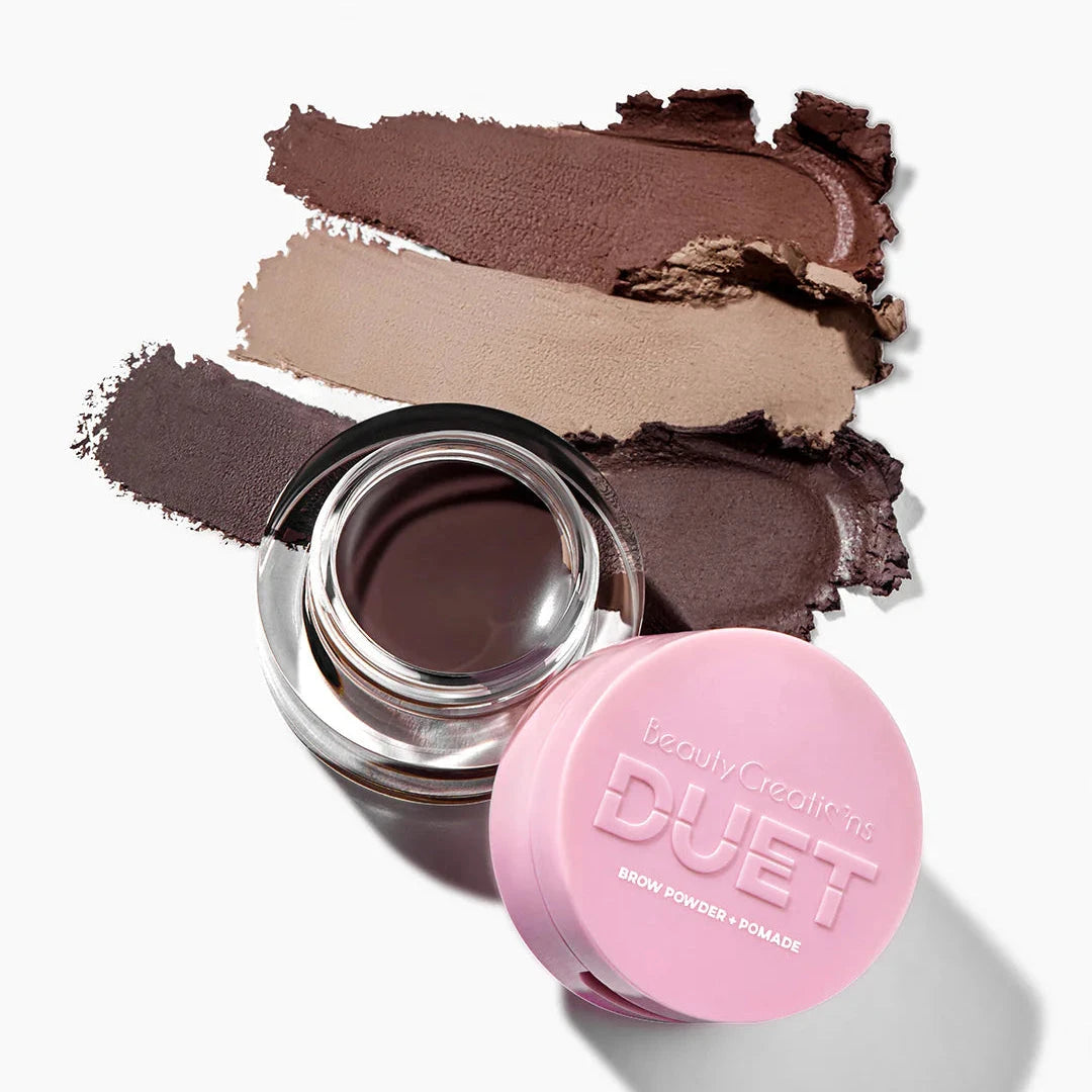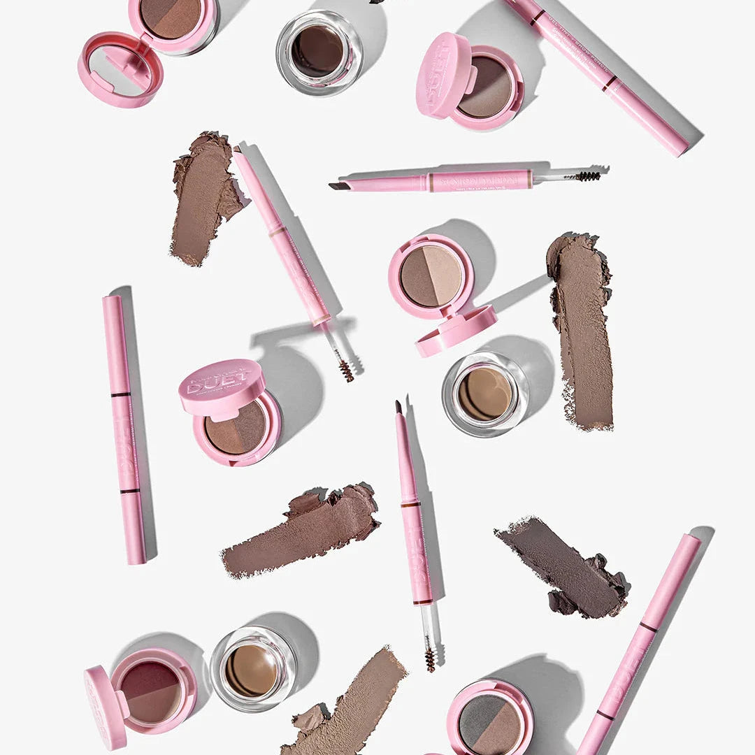 The ultimate dual-ended brow essential that pairs a soft-focus powder with a precision-perfect pomade—all in one sleek, innovative component. On one end, the compact top opens to reveal a dual-shade brow powder, perfect for creating soft definition and natural dimension. Flip it over to find the jar-like base housing a rich, water-resistant sculpting brow pomade—ideal for bold definition and long-lasting hold. Wear the powder alone for a natural look, or layer it with the pomade to add intensity.