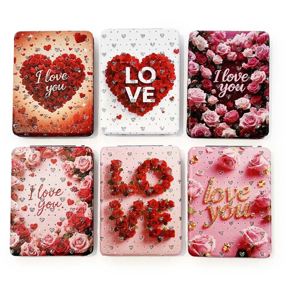Wear your heart boldly. This double-sided mirror flaunts an unapologetic love heart design that celebrates passion and confidence from every angle. Both sides deliver the same striking print, ensuring your reflection radiates romance no matter which way you flip it. Fearless and romantic, it's for those who aren't afraid to show what they feel. Stock up with 12 units of this statement piece—perfect for retailers targeting customers who embrace their emotions without apology. Make hearts skip a beat.