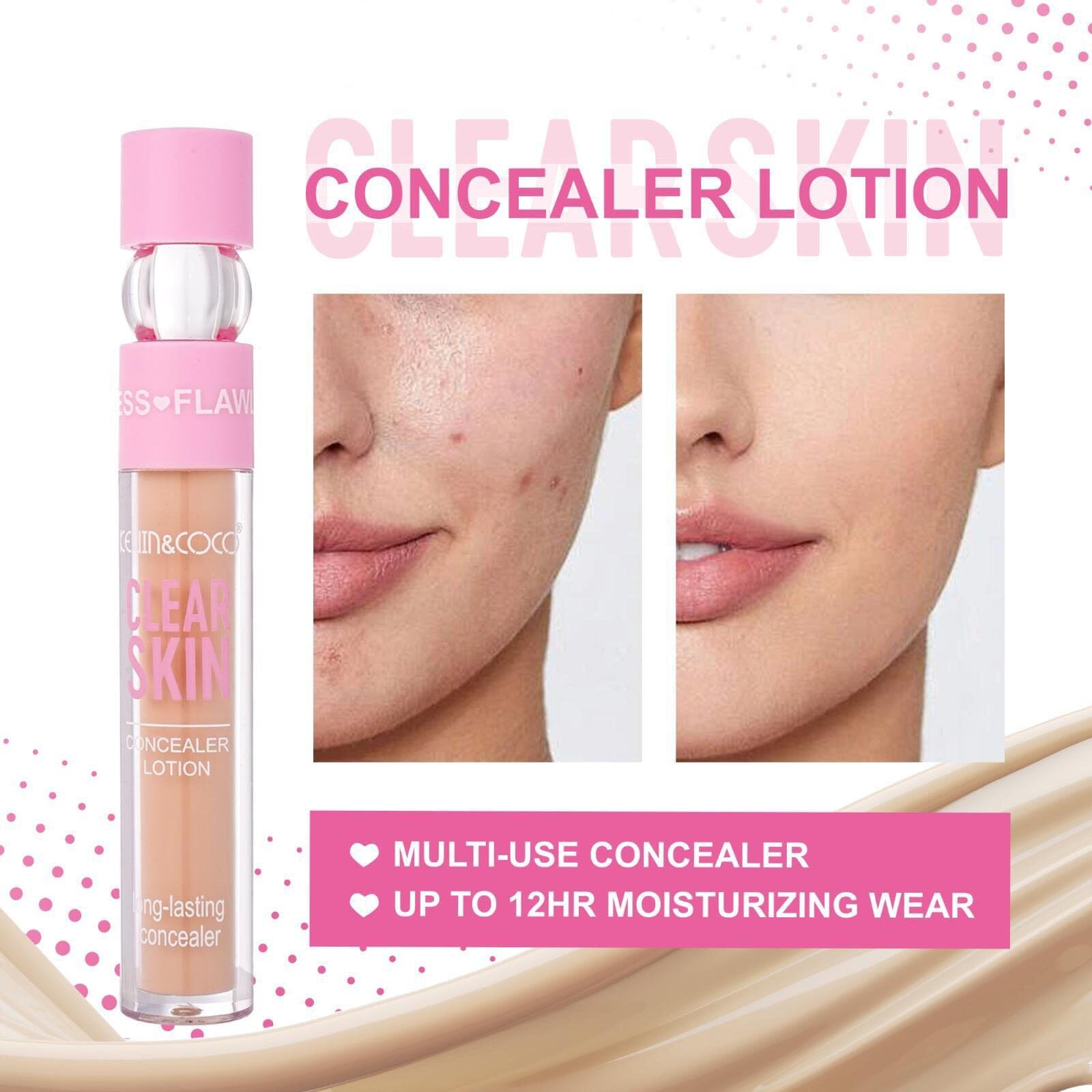 Achieve a smooth and flawless complexion with KEVIN & COCO Clear Skin Concealer Lotion. This lightweight concealer helps cover dark circles, blemishes, and imperfections while blending easily for a natural-looking finish. The moisturizing formula provides comfortable wear throughout the day, leaving skin looking even and radiant. Presented in a convenient 24-piece display, it is perfect for retail counters and easy shade selection. 💄✨