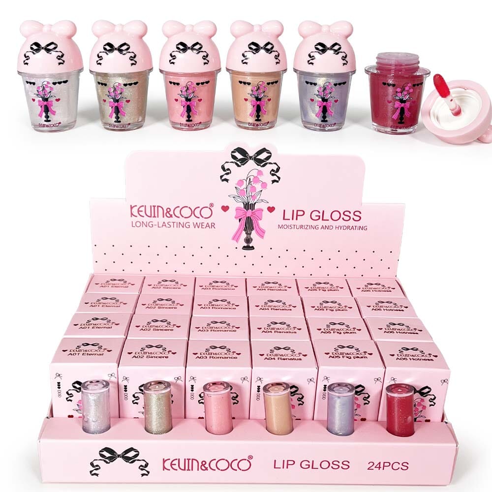 Unleash your boldest self with this show-stopping Bow Flower Vase Lipgloss. Housed in an eye-catching floral vase design, this lipgloss delivers a lustrous, high-shine finish that commands attention. Perfect for wholesale buyers, this 24-unit collection offers stunning variety to stock shelves with statement-making beauty. Each piece combines playful aesthetics with luxurious color payoff, making it an instant favorite for trendsetters who refuse to blend in. Transform your inventory with a product that's as daring as your customers' style.