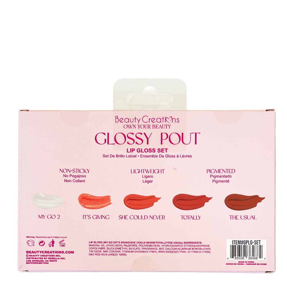 Unleash your boldest look with the Glossy Pout 5PC Lip Gloss Set. This daring collection features five vibrant shades that deliver high-shine, luscious color to make your lips impossible to ignore. Perfect for mixing, matching, and turning heads wherever you go. Elevate your pout and own your confidence with every swipe.