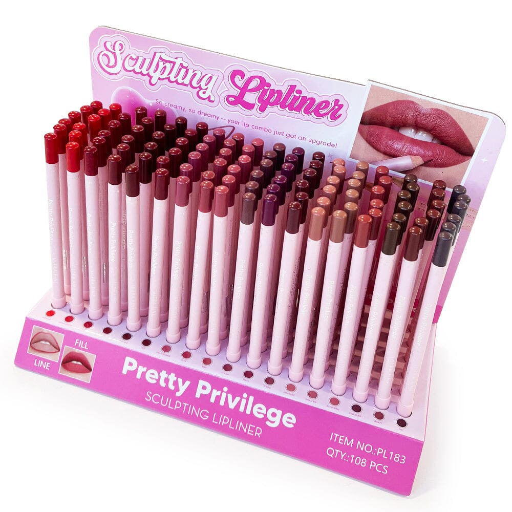 Define lips with unrelenting precision. Sculpting Lip Liner Display features 108 units of bold, professional-grade color that carves out flawless lip contours. This daring formula delivers rich pigment that stays locked in place, refusing to budge or fade throughout the day. Perfect for wholesale retailers, this bulk display offers serious profit potential with a product customers will repurchase constantly. Master the art of lip definition with confidence and edge.