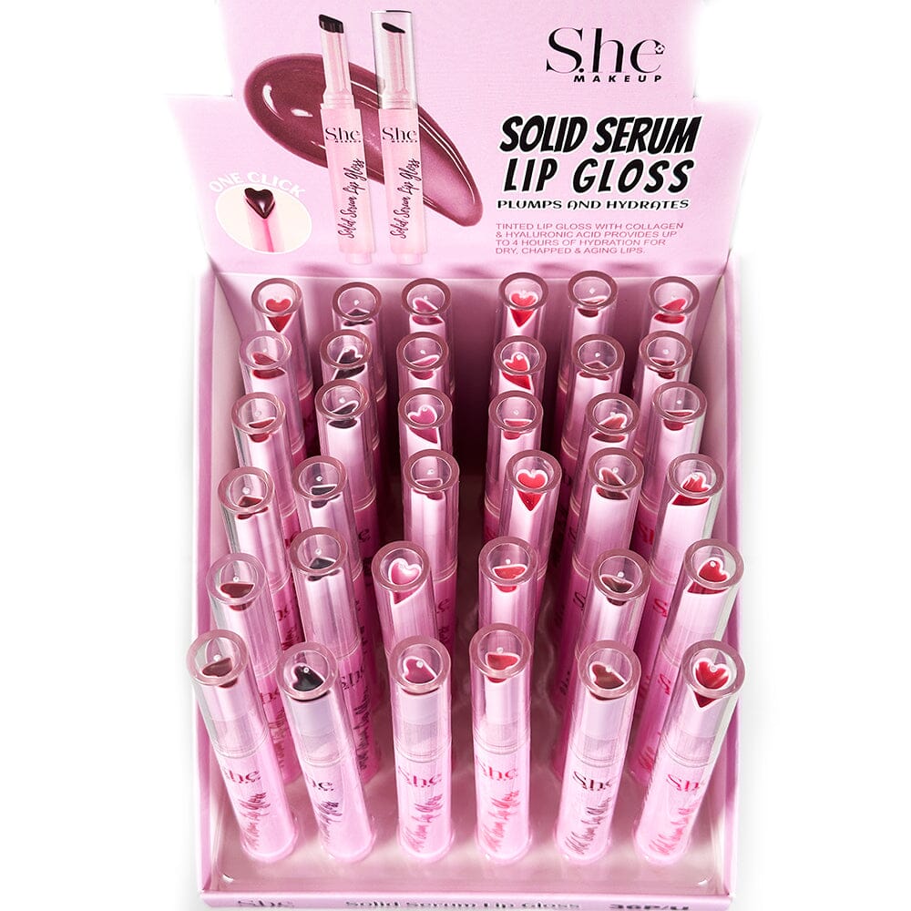 Plumping solid lip gloss infused with serum benefits for hydrated, fuller-looking lips.