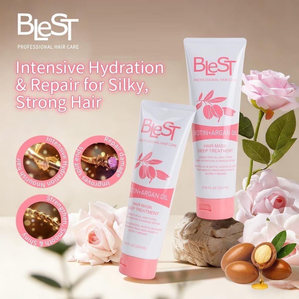 Restore strength and shine with this intensive hair mask infused with biotin and argan oil. Designed to deeply hydrate, repair damage, and leave your hair silky smooth.